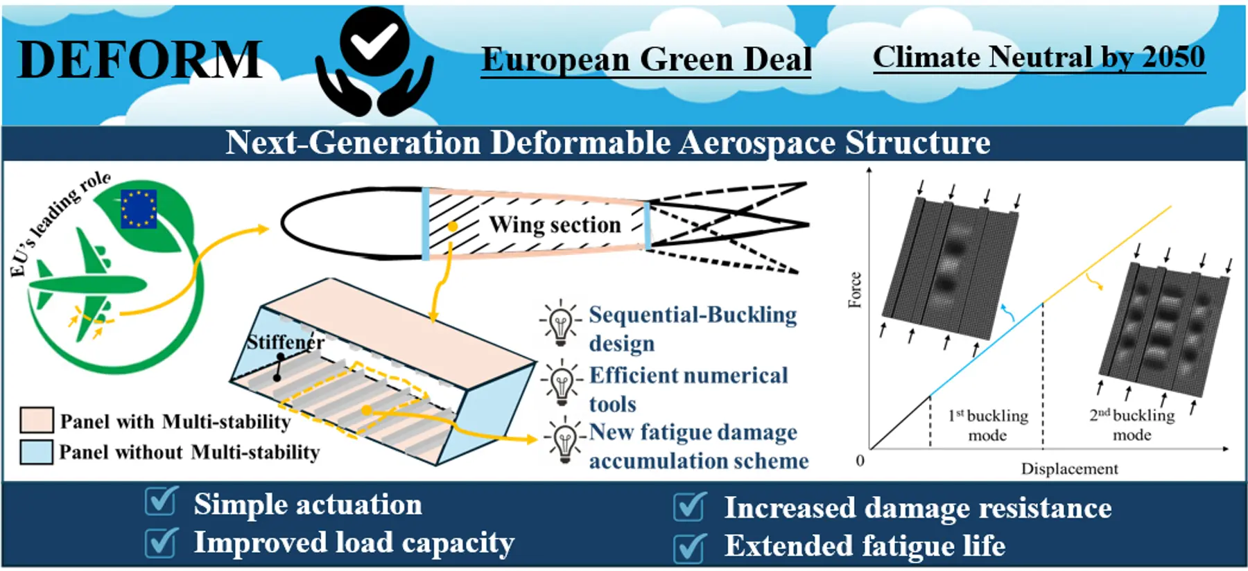 MSCA: DEFORM - Design against Fatigue of Multi-Stable and More Efficient Aerospace Composite Structures Driven by Sequential Buckling for Greener Aviation