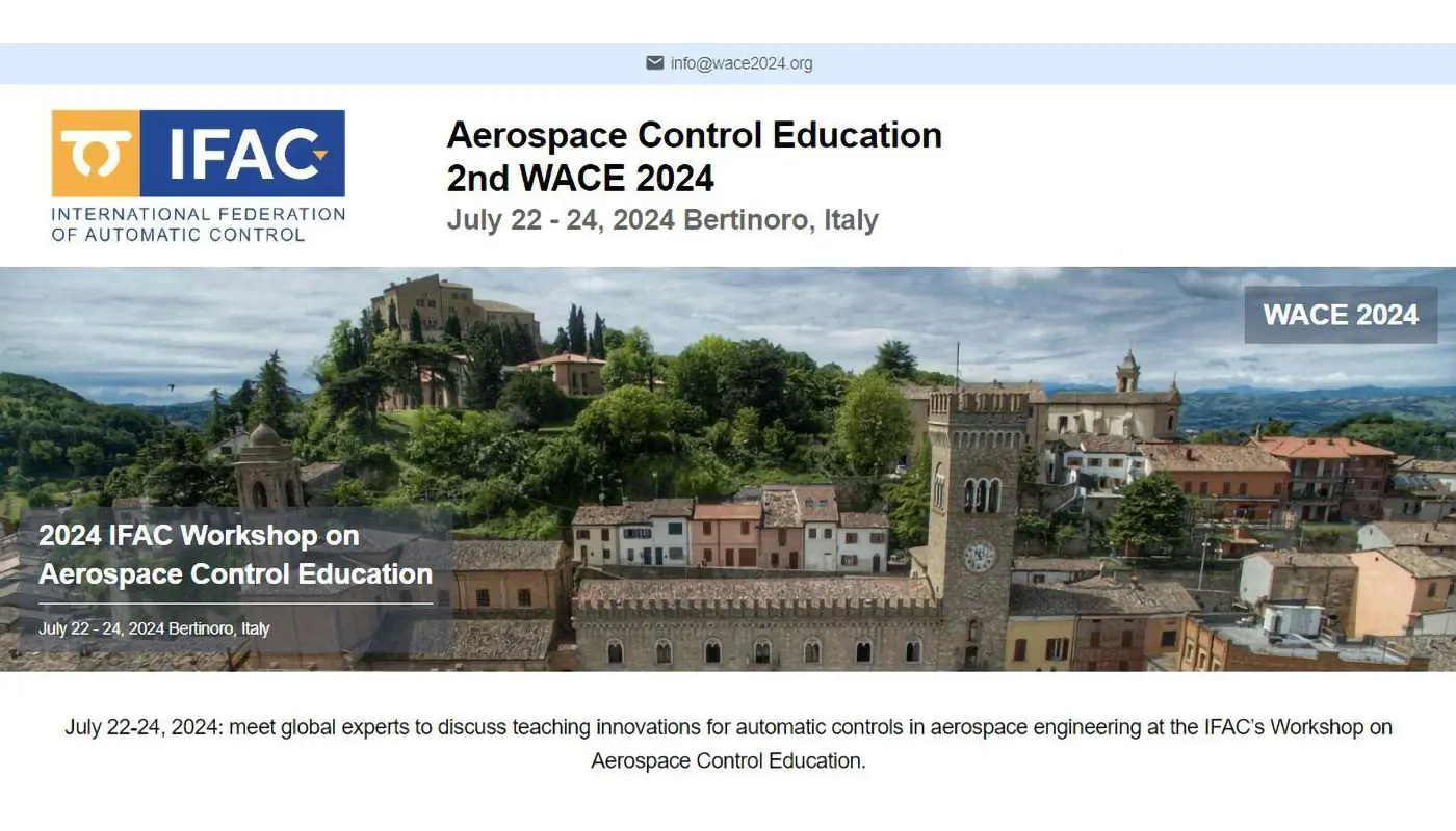 2024 IFAC Workshop on Aerospace Control Education (WACE), scheduled to be held in Bertinoro, Italy, from July 22-24, 2024.