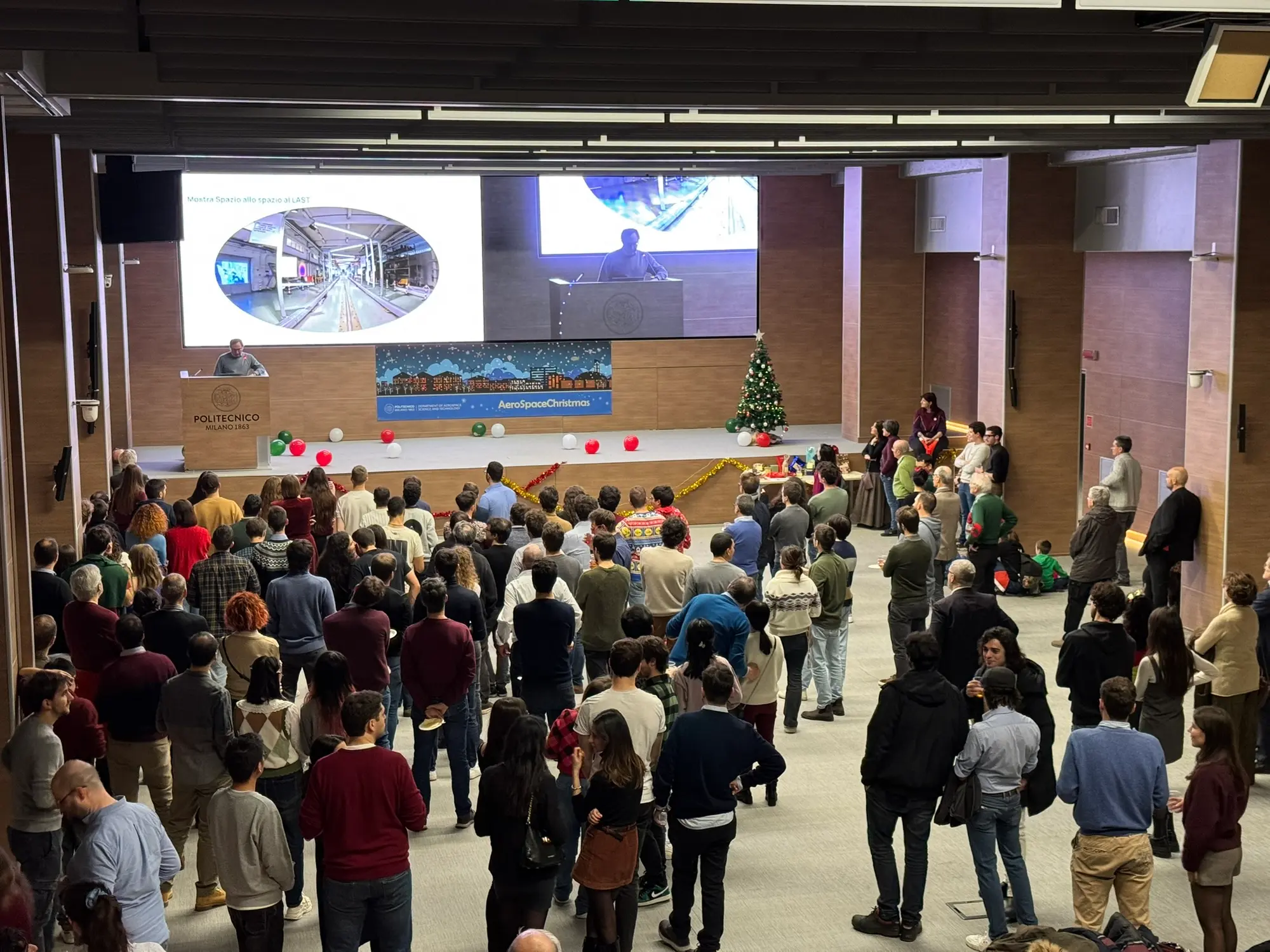 La Festa di Natale del Dipartimento di Scienze e Tecnologie Aerospaziali del Politecnico di Milano (DAER) si è svolta il 19 dicembre 2024 presso l'aula De Carli del Campus Candiani