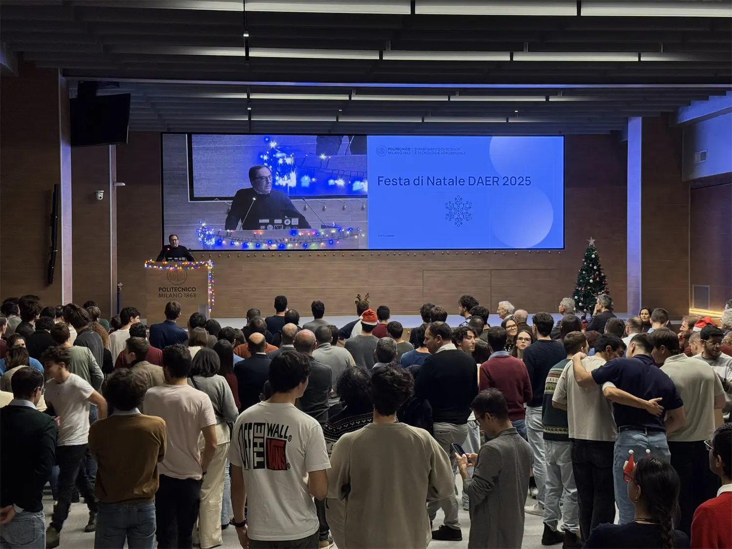 La Festa di Natale del Dipartimento di Scienze e Tecnologie Aerospaziali del Politecnico di Milano (DAER) si è tenuta il 19 dicembre presso l’aula De Carli del Campus Candiani