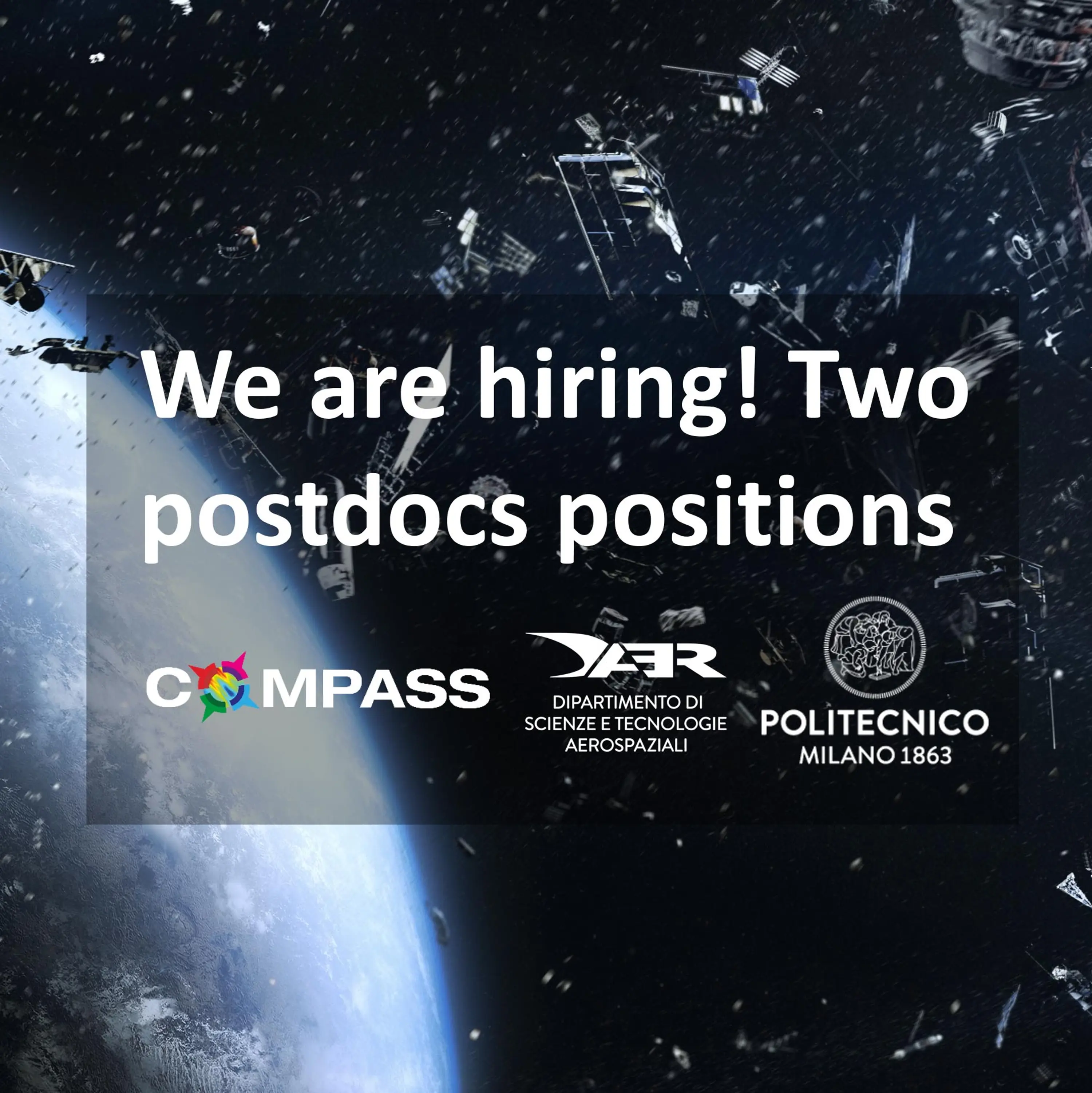 Two Postdoc positions open on "Techniques and software development for Space Situational Awareness and Space Traffic management" at Politecnico di Milano, Department of Aerospace Science and Technology within the COMPASS research group.